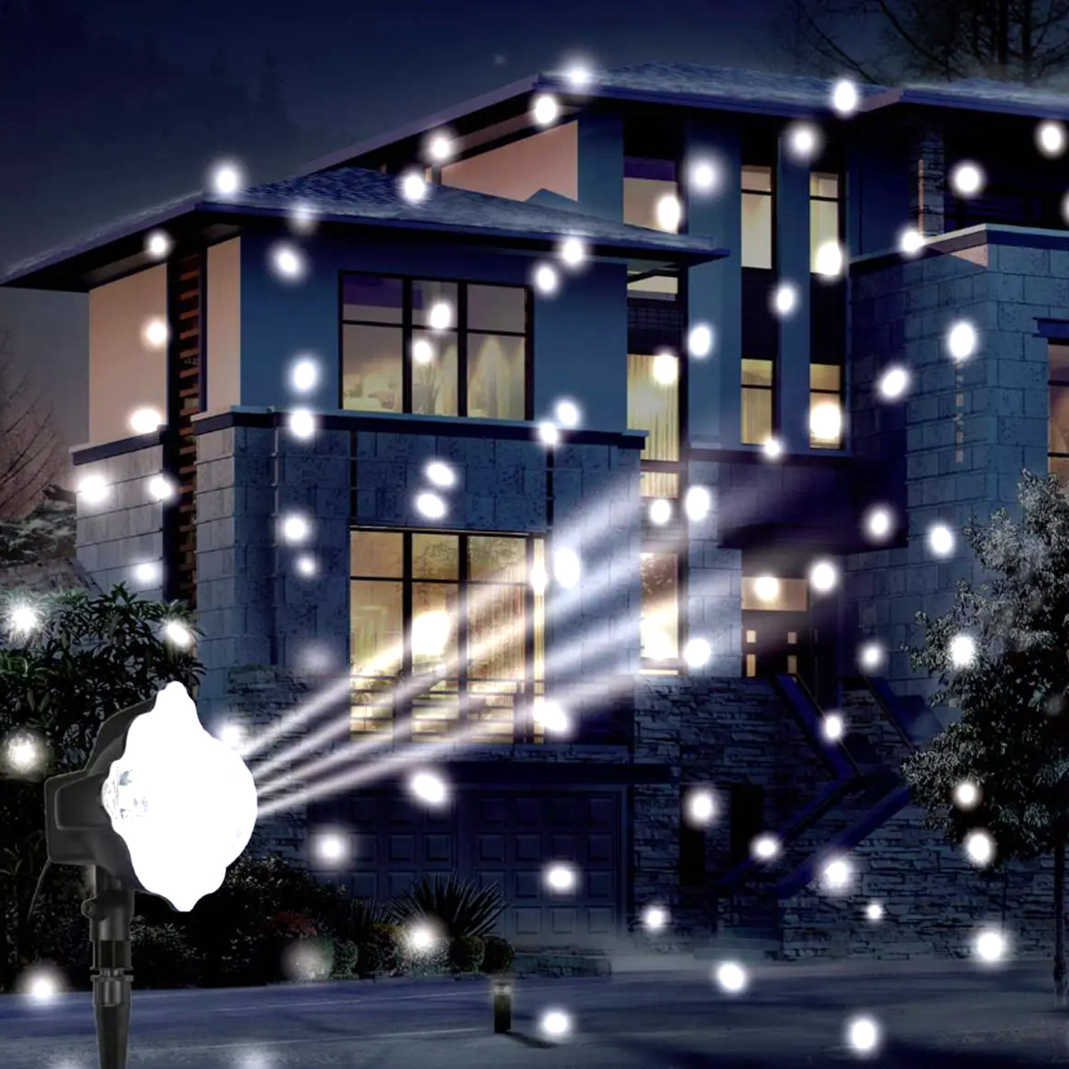 Προτζέκτορας Led με χριστουγεννιάτικο περιστρεφόμενο σχέδιο με χιονονιφάδες. Διαθέτει 2 βάσεις, μία με τρίποδο και μία καρφωτή ειδική για στήριξη μέσα σε χώμα για τοποθέτηση σε κήπο ή γλάστρα. Έχει 1 μέτρο διαθέσιμο καλώδιο και χρονοδιακόπτη 8 ωρών. Λειτουργεί με ρεύμα και είναι κατάλληλος και για εξωτερικούς χώρους. Ιδανικά τοποθετήστε τον σε απόσταση 8 μέτρων από την επιφάνεια που θέλετε να φαίνεται το σχέδιο. Η επιφάνεια που καλύπτει το σχέδιο είναι έως 144 τ.μ. Διαθέτει 4 ενσωματωμένες πλακέτες Led συνολικής ισχύος 6Watt, ψυχρού λευκού φωτός. Με 4 λειτουργίες: Γρήγορη-μεσαία-αργή κίνηση και σταθερό.