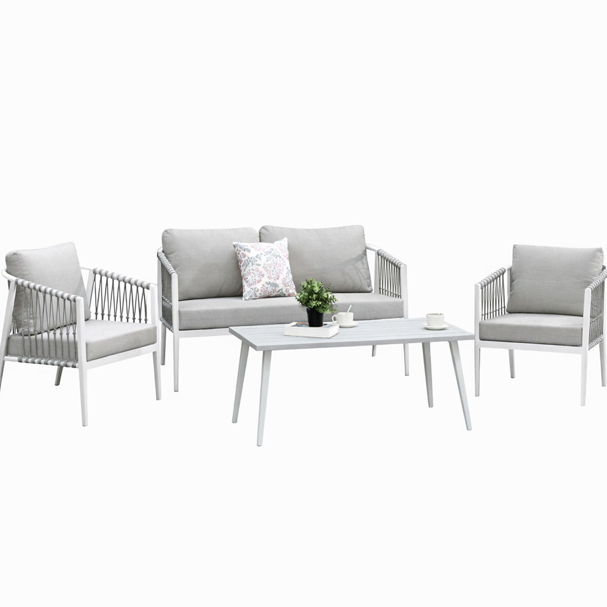 Απολαύστε μια στιγμή χαλάρωσης στη βεράντα ή στον κήπο σας, κάνοντας τον εαυτό σας άνετο στο σαλόνι Bora. Ιδανικό για 4 άτομα, αυτό το εξαιρετικά άνετο σετ αποτελείται από έναν καναπέ 2 θέσεων, 2 πολυθρόνες και τραπεζάκι του καφέ.Εξοπλισμένο με χαλύβδινη δομή που προσφέρει καλή αντοχή στη διάβρωση, τα διάφορα στοιχεία αυτού του καθιστικού έχουν επένδυση απομίμησης μπαστούνι για ένα διαχρονικό και κομψό μακρύ.Αυτά τα έπιπλα είναι εξοπλισμένα με μπεζ αφαιρούμενα καλύμματα μαξιλαριών που προσφέρουν βέλτιστη άνεση. Παρεχόμενα αξεσουάρ: ΜαξιλάριαΥποβραχιόνιο: ΝαιΣύνθεση του σετ: 1 2θέσιος καναπές, 2 πολυθρόνες και 1 τραπεζάκι σαλονιού