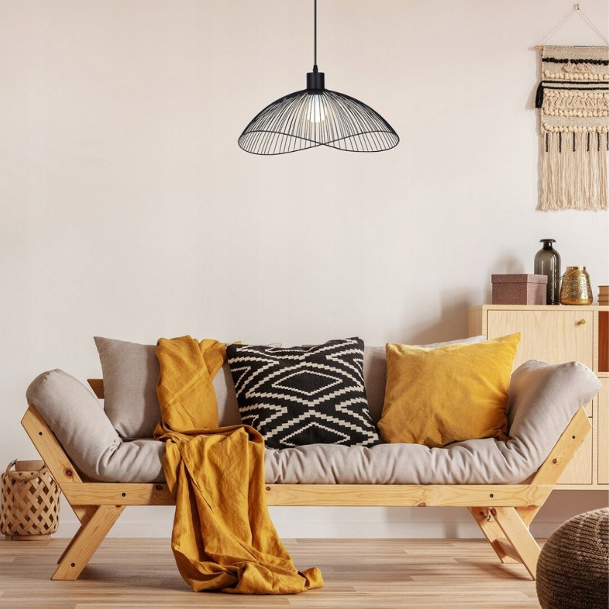 Ένα κρεμαστό φωτιστικό οροφής με πρωτότυπο, μοντέρνο χρώμα και σχέδιο.Αντιπροσωπεύοντας το βιομηχανικό στυλ, το κρεμαστό φωτιστικό Iduna θα αποτελέσει μια ξεχωριστή προσθήκη στο μοντέρνο σαλόνι, την τραπεζαρία ή την κουζίνα σας.Αυτό το ματ μαύρο μοντέλο είναι κατασκευασμένο εξ ολοκλήρου από μέταλλο. Το φωτιστικό μπορεί να τοποθετηθεί στην οροφή με μια μικρή, διακοσμητική στρογγυλή βάση. Ένα ξεχωριστό χαρακτηριστικό αυτού του φωτιστικού είναι το μεταλλικό πλέγμα-αμπάρι και το κυματιστό σχήμα του.Το φωτιστικό Iduna μπορεί να χρησιμοποιηθεί με μία μόνο λάμπα έως 60W. Ο τύπος πρίζας είναι E27. Για ένα φωτεινό, μοντέρνο εφέ στο δωμάτιο, επιλέξτε μια πηγή φυσικού λευκού φωτός.Οι διαστάσεις του κρεμαστού φωτιστικού Iduna είναι οι εξής: πλάτος 500mm, ύψος αμπαζούρ 430mm, απόσταση από την οροφή 1800mm και διάμετρος εγκατάστασης 90mm.Αυτό το μοντέλο παρέχεται χωρίς πηγή φωτός.