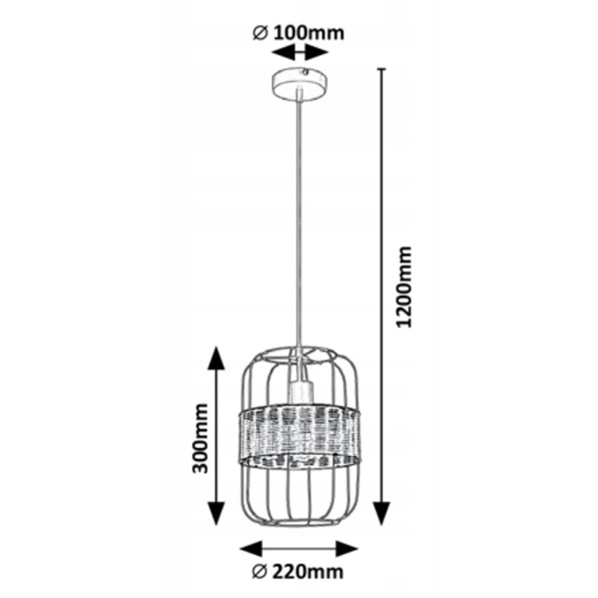 Διάμετρος σκίαστρου 220 mm, ύψος 300 mm, ανάρτηση 900 mm (συνολική απόσταση από την οροφή έως 1200 mm)