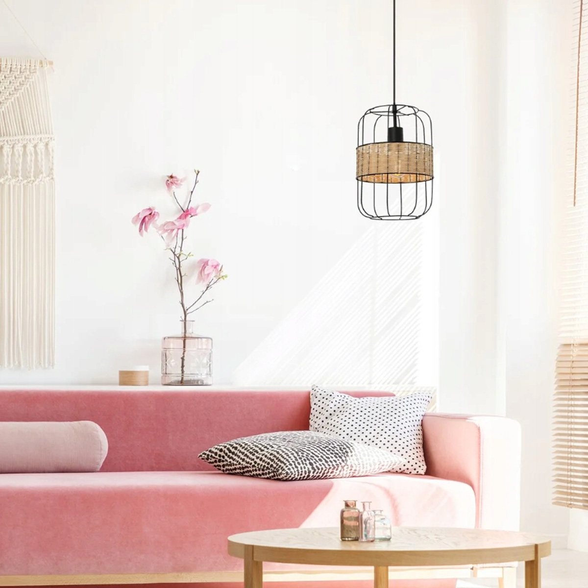 Βιομηχανικό στυλ – μαύρο μεταλλικό πλαίσιο κλουβιού με φυσική υφασμένη διακόσμηση