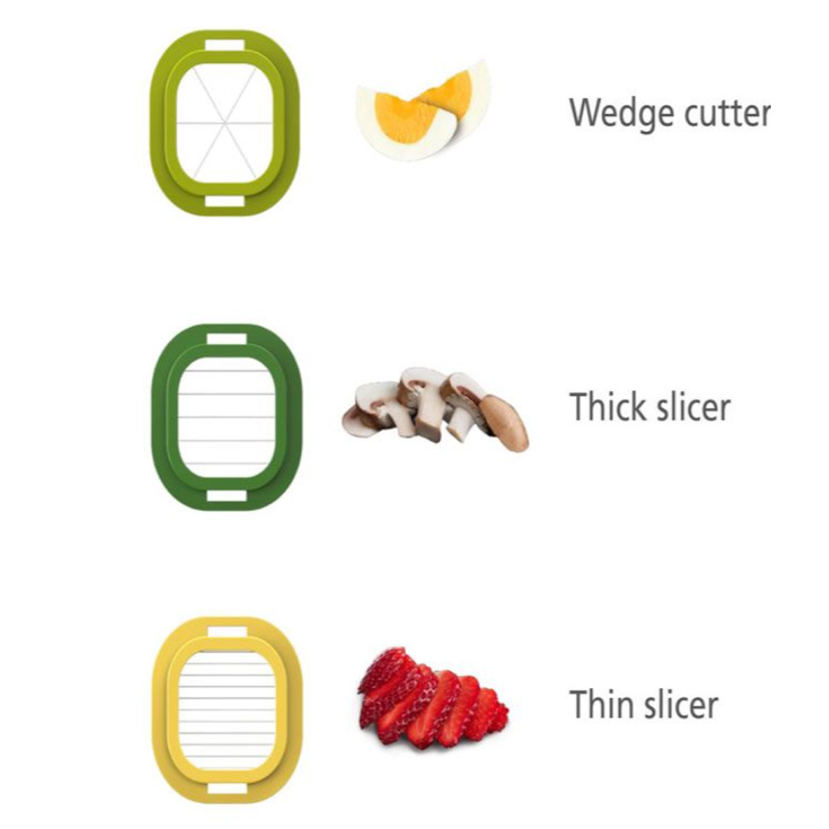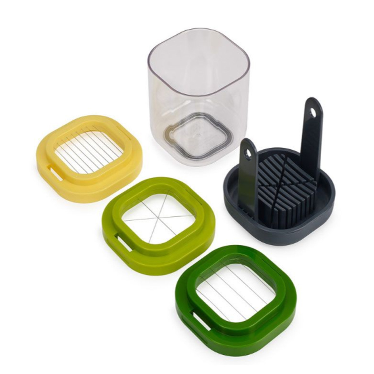 Το σετ προετοιμασίας τροφίμων Joseph Joseph Multi-Prep™ Mini 3 τεμαχίων είναι ένα ευέλικτο και συμπαγές εργαλείο κουζίνας σχεδιασμένο για να απλοποιεί το κόψιμο μαλακών τροφών. Ιδανικό για την προετοιμασία ειδών όπως βραστά αυγά, μαλακά φρούτα και μανιτάρια, αυτό το σετ προσφέρει ακρίβεια και ευκολία σε ένα σχεδιασμό που εξοικονομεί χώρο.Τρία εργαλεία κοπής από ανοξείδωτο ατσάλι:Κόφτης σφήνας: Ιδανικός για την τεμαχισμό τροφίμων σε ίσες φέτες.Χοντρός κόφτης: Ιδανικός για τον τεμαχισμό ειδών όπως φράουλες ή μανιτάρια σε παχύτερα κομμάτια.Λεπτός κόφτης: Ιδανικός για την επίτευξη λεπτότερων φετών μαλακών φρούτων και λαχανικών.Αντιολισθητική βάση συλλογής: Η διαφανής βάση όχι μόνο παρέχει σταθερότητα κατά τη χρήση, αλλά σας επιτρέπει επίσης να βλέπετε τα κομμένα υλικά καθώς συσσωρεύονται.Καπάκι με ενσωματωμένη λαβή τροφίμων: Εξασφαλίζει ασφαλή και αποτελεσματικό κόψιμο σε φέτες κρατώντας το φαγητό σταθερά στη θέση του.Συμπαγής σχεδιασμός: Όλα τα εξαρτήματα τοποθετούνται μαζί για εύκολη αποθήκευση, καθιστώντας το ιδανικό για κουζίνες με περιορισμένο χώρο.