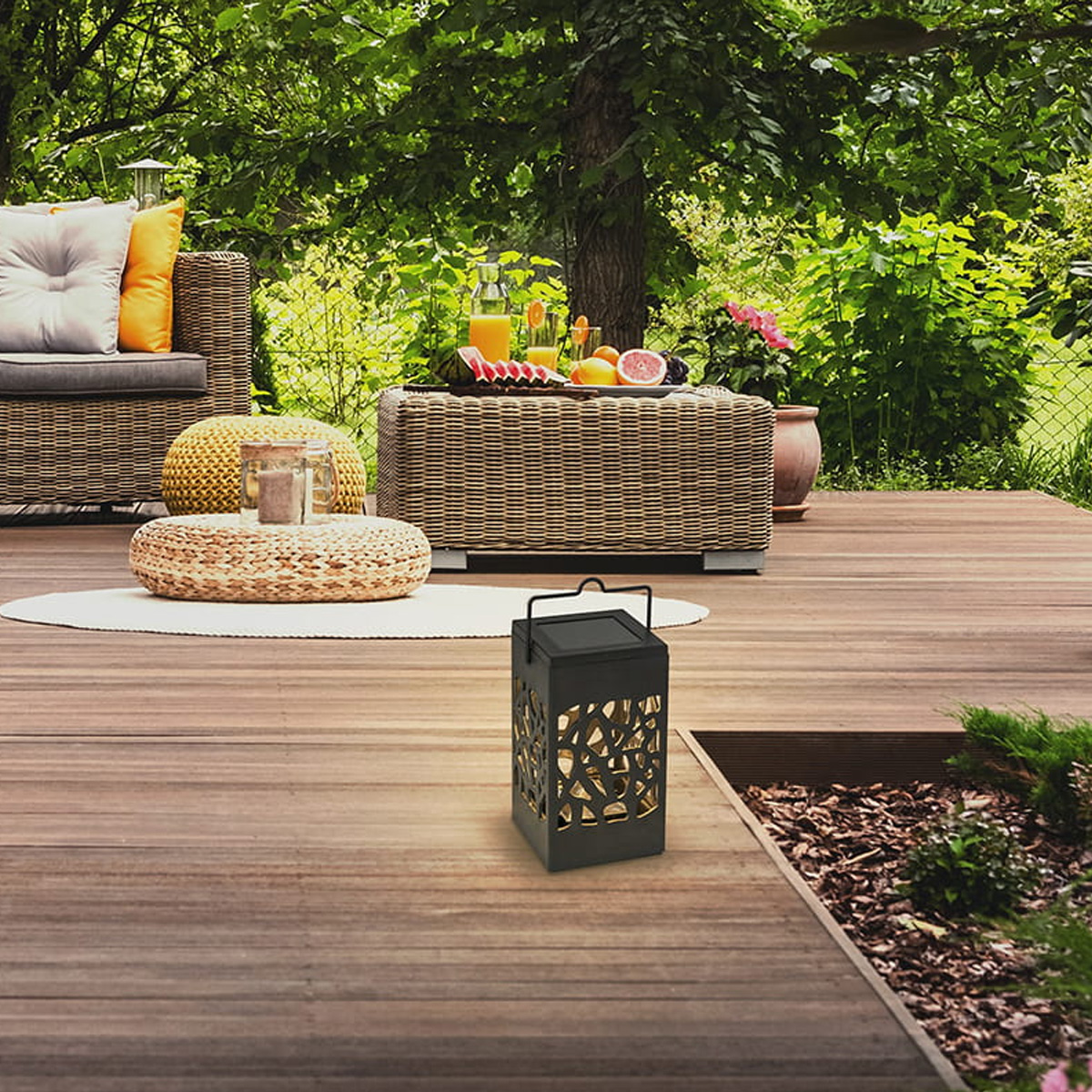 Το ηλιακό φωτιστικό Mora θα αποτελέσει μια ευχάριστη προσθήκη στη βεράντα ή τον κήπο σας. Μπορείτε να το τοποθετήσετε στο πάτωμα, στο τραπέζι ή ακόμα και να το κρεμάσετε. Αυτό το διακοσμητικό μαύρο πλαστικό φωτιστικό διαθέτει ενσωματωμένη πηγή φωτός LED που εκπέμπει θερμό λευκό φως. Η πηγή φωτός εξοικονόμησης ενέργειας έχει ισχύ 0,07 W, φωτεινότητα 1,2 lumen, θερμοκρασία χρώματος 3000 K και διάρκεια ζωής 20.000 ωρών. Τύπος ηλιακού στοιχείου: AAA NiMH 200mAh. Το τετράγωνο φωτιστικό έχει διαστάσεις 60×60 mm και ύψος 100 mm. Έχει βαθμολογία IP23, που σημαίνει ότι προστατεύεται από αντικείμενα με μέγιστη διάμετρο 12 mm (π.χ. δάχτυλα) και από βροχή έως γωνία 60°.