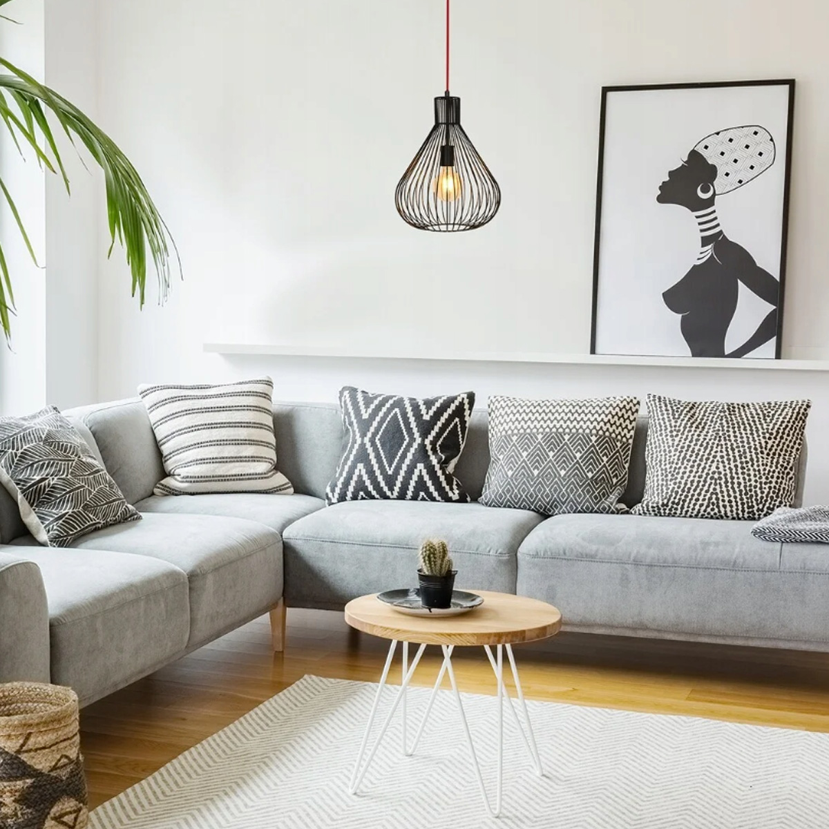 Το βιομηχανικό κρεμαστό φωτιστικό Zille θα αποτελέσει μια ξεχωριστή προσθήκη στο μοντέρνο σαλόνι ή την τραπεζαρία σας. Αυτό το ματ μαύρο μοντέλο είναι κατασκευασμένο εξ ολοκλήρου από μέταλλο και μπορεί να τοποθετηθεί στην οροφή με μια μικρή, στρογγυλή, διακοσμητική βάση. Η μοναδική του εμφάνιση προέρχεται από το μεταλλικό αμπαζούρ σε σχήμα αχλαδιού, σε σχήμα κλουβιού, και το κόκκινο υφασμάτινο κορδόνι που συνδέει το αμπαζούρ με τη διακοσμητική βάση. Το φωτιστικό Zille μπορεί να χρησιμοποιηθεί με μία μόνο λάμπα έως 40W. Ο τύπος πρίζας είναι E27. Αν θέλετε μια καθαρή, μοντέρνα εμφάνιση με τον φωτισμό σας, επιλέξτε μια πηγή φυσικού λευκού φωτός. Οι διαστάσεις του κρεμαστού φωτιστικού Zille είναι οι εξής: η διάμετρος του αμπαζούρ είναι 305 mm, το ύψος είναι 410 mm, η απόσταση από την οροφή είναι 1900 mm και η διάμετρος τοποθέτησης είναι 100 mm. Αυτό το μοντέλο παρέχεται χωρίς πηγή φωτός.