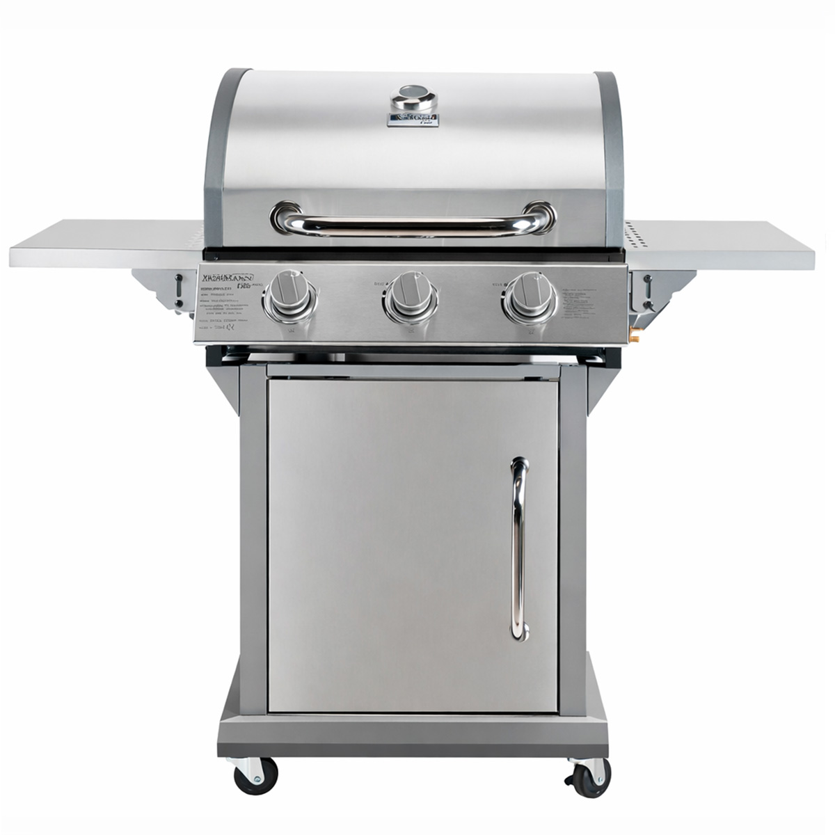 Electronic ignitionCast iron grill (2 parts)Lid thermometerDouble-layer lid for constant temperatureFinished with “Repellant Glass” for easy cleaningSpacious grill for 2-8 people2 powerful burners with electronic ignitionGrease tray for draining greaseWith side burner