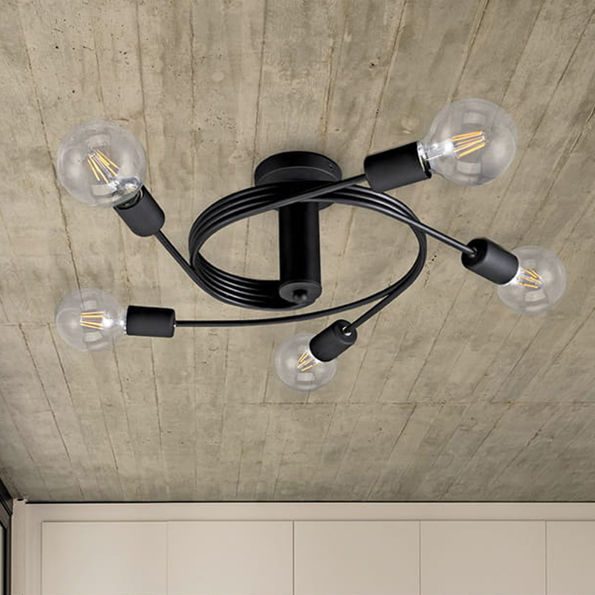 CARLY CEILING LAMP WITH 5 LAMPS METAL GRID BLACK