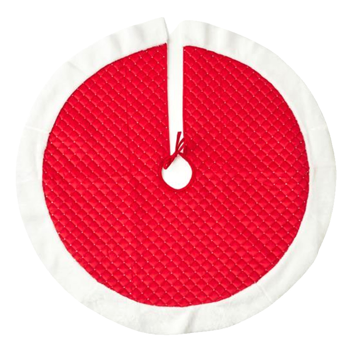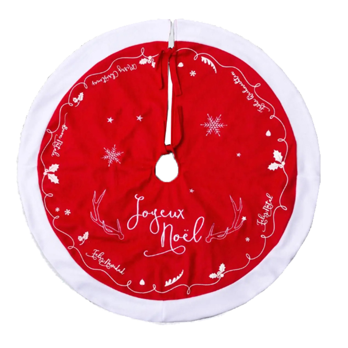 Tree apron in red with black details and bells. It is made of velour fabric composed of 100% polyester. It has a diameter of 90cm. and is placed under the Christmas tree to hide unwanted cables and its base.
