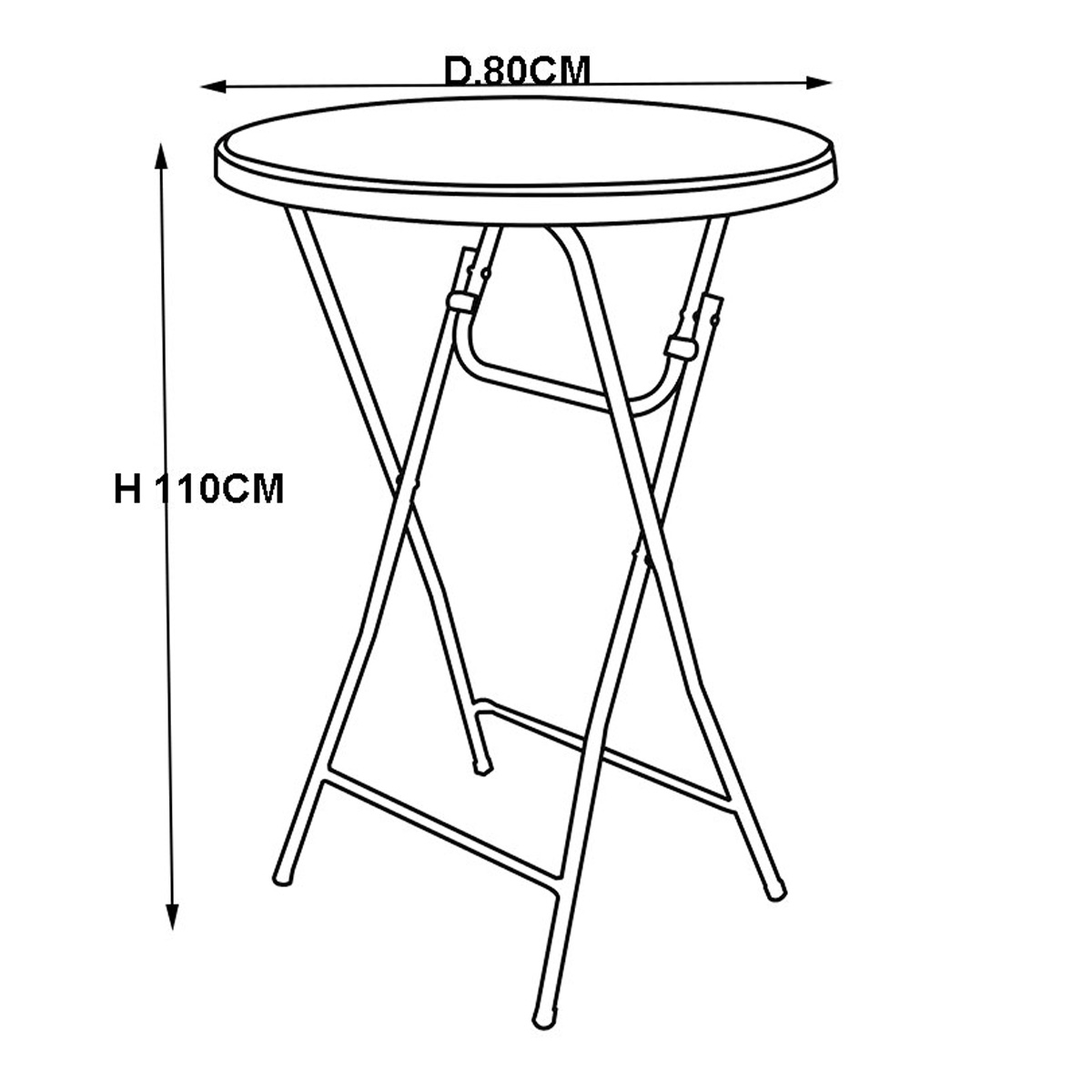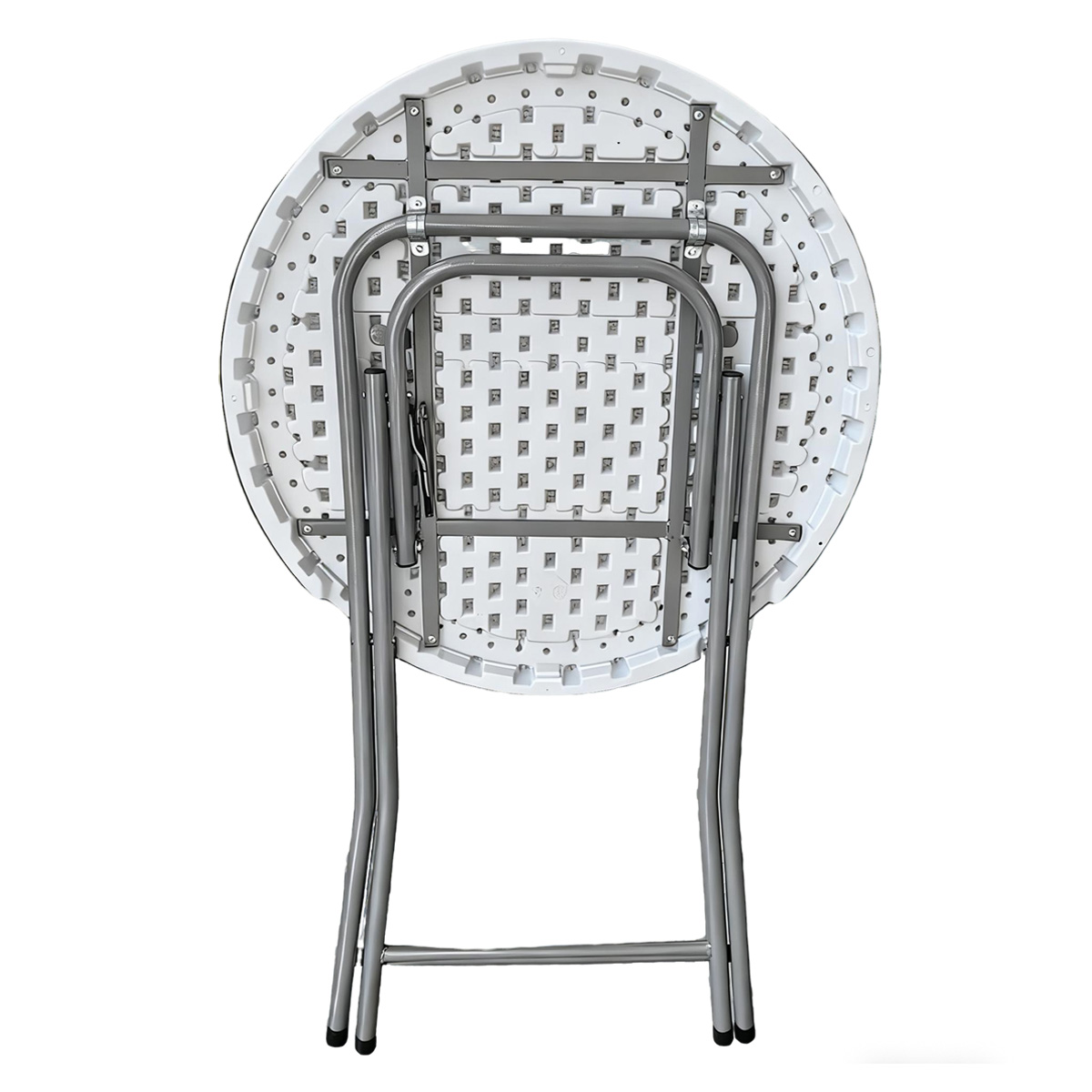 Folding cocktail table.Plastic with metal legs.Easy to transport and move around.Ideal for events and parties.Top: Off white Frame: Grey