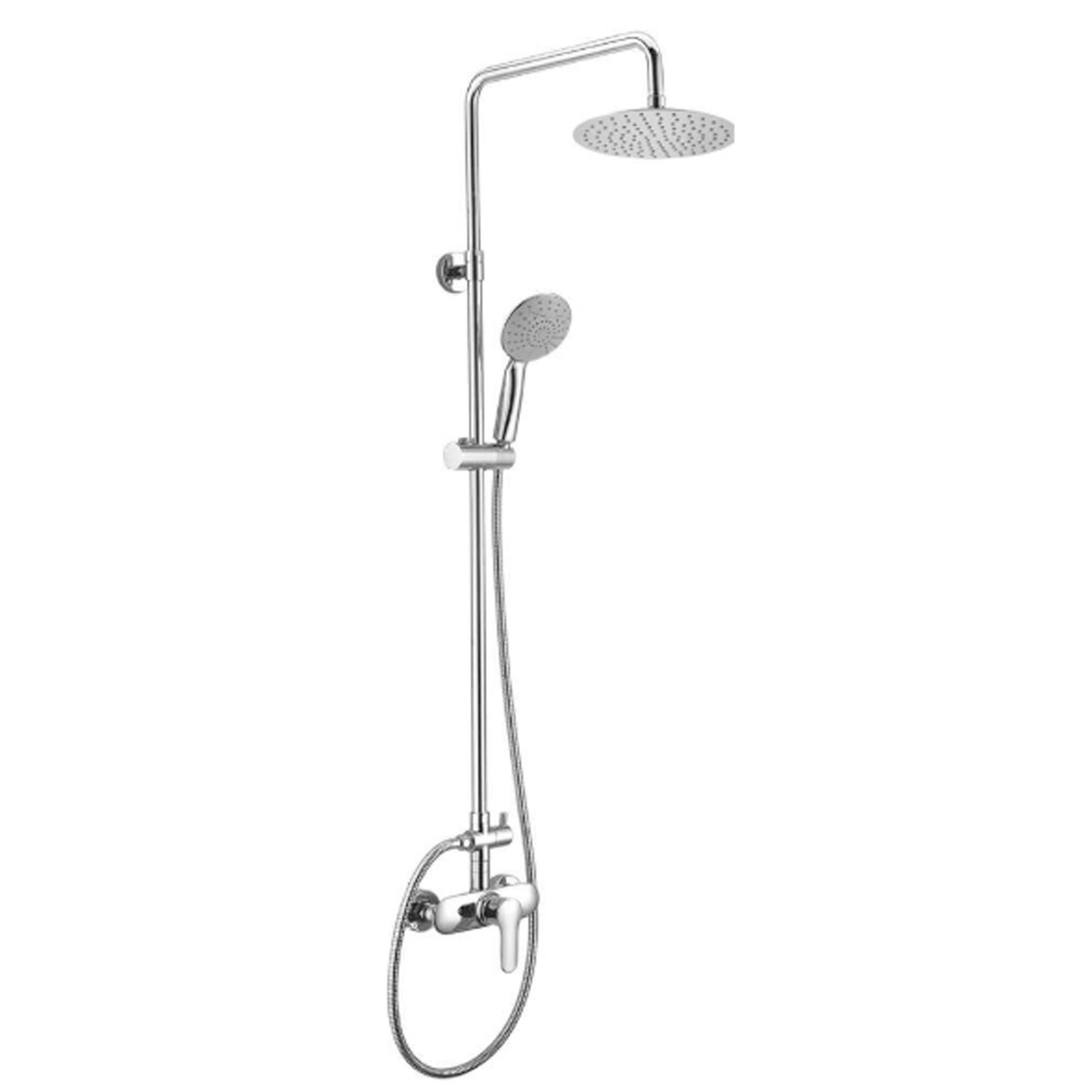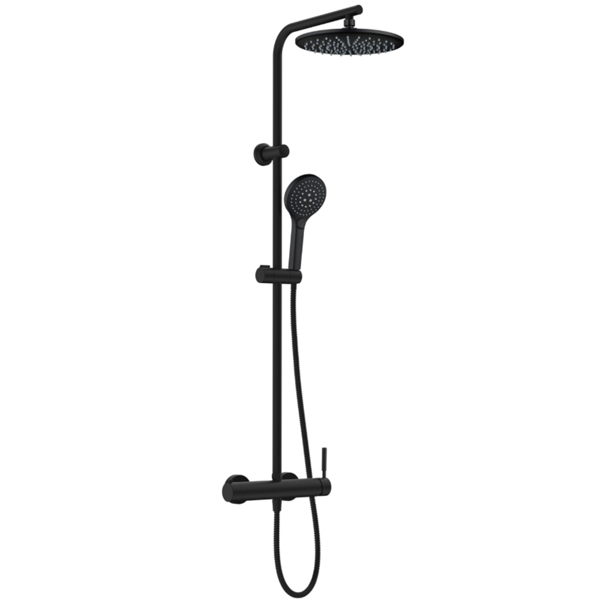 Chrome-plated Lomi thermostatic shower column by Inventiv with ultra-flat stainless steel shower head and chrome-plated shower head with 3 nozzles and anti-limescale nozzles.Thermostatic mixer with 38°C safety function, cold body with integrated diverter.Shower hose with double chrome-plated lock and anti-rotation nut.