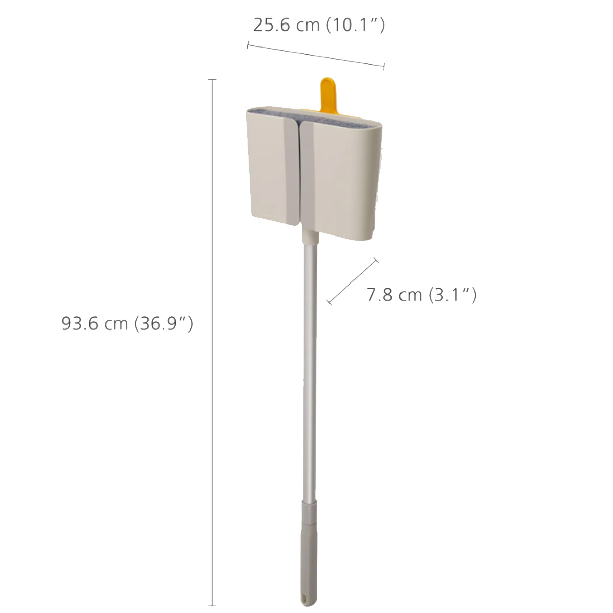 Wall-mounted broom, 25.5 x 8 x 93.5 cm H.Dust-shield™ wall mount covers the broom for cleaner storage.Easy access to the broom holder with soft rubber wings.Winged bristles sweep up dust effectively.Separate bristle comb to remove trapped hair and dust.Telescopic aluminum pole with non-slip grip.CleanTech™ is a range of cleaning equipment and tools that tackles dirt from floor to ceiling.Color: Gray