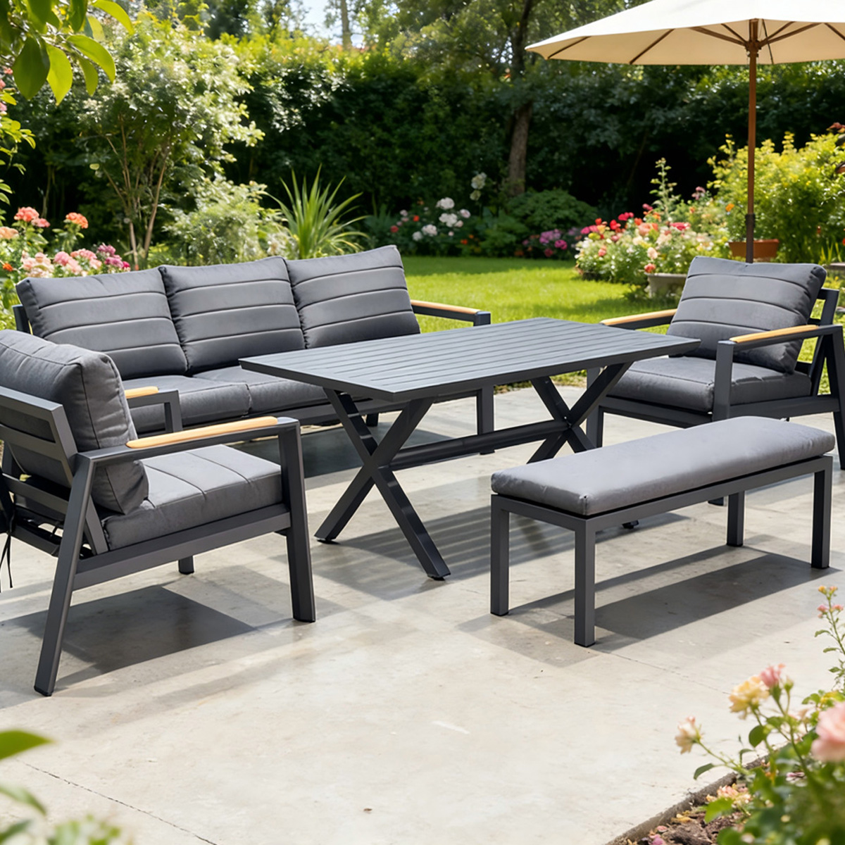 L.H GARDEN ΣΕΤ ALUMINUM GARDEN FURNITURE SET 5 PIECES DARK GRAY