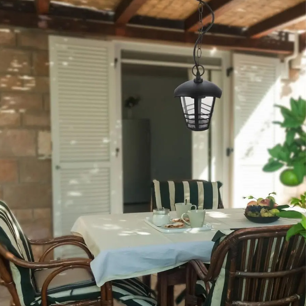 MARSEILLE hanging outdoor lamp made of metal and plastic, suitable for a garden terrace.We recommend using an LED incandescent bulb with an E27 base for the lamp.