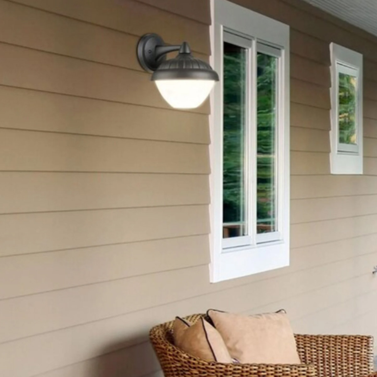 We recommend the Modesto outdoor wall lamp to lovers of traditional style. With its unique shape, a black metal frame and a white plastic lampshade directed downwards, this lamp creates a special atmosphere on your terrace or in the entrance of your house. The wall lamp is complemented by a black, round decorative base. The Modesto lamp can be used with a light source up to 40 W, socket type: E27. The dimensions of the external light are as follows: diameter 170 mm, height 195 mm, distance from the wall 200 mm. Its IP44 degree of protection ensures tightness against objects with a maximum diameter of 1 mm, as well as resistance to splashing water from any direction.