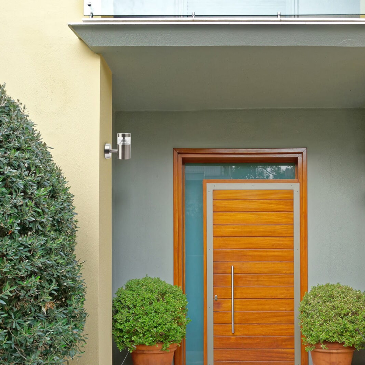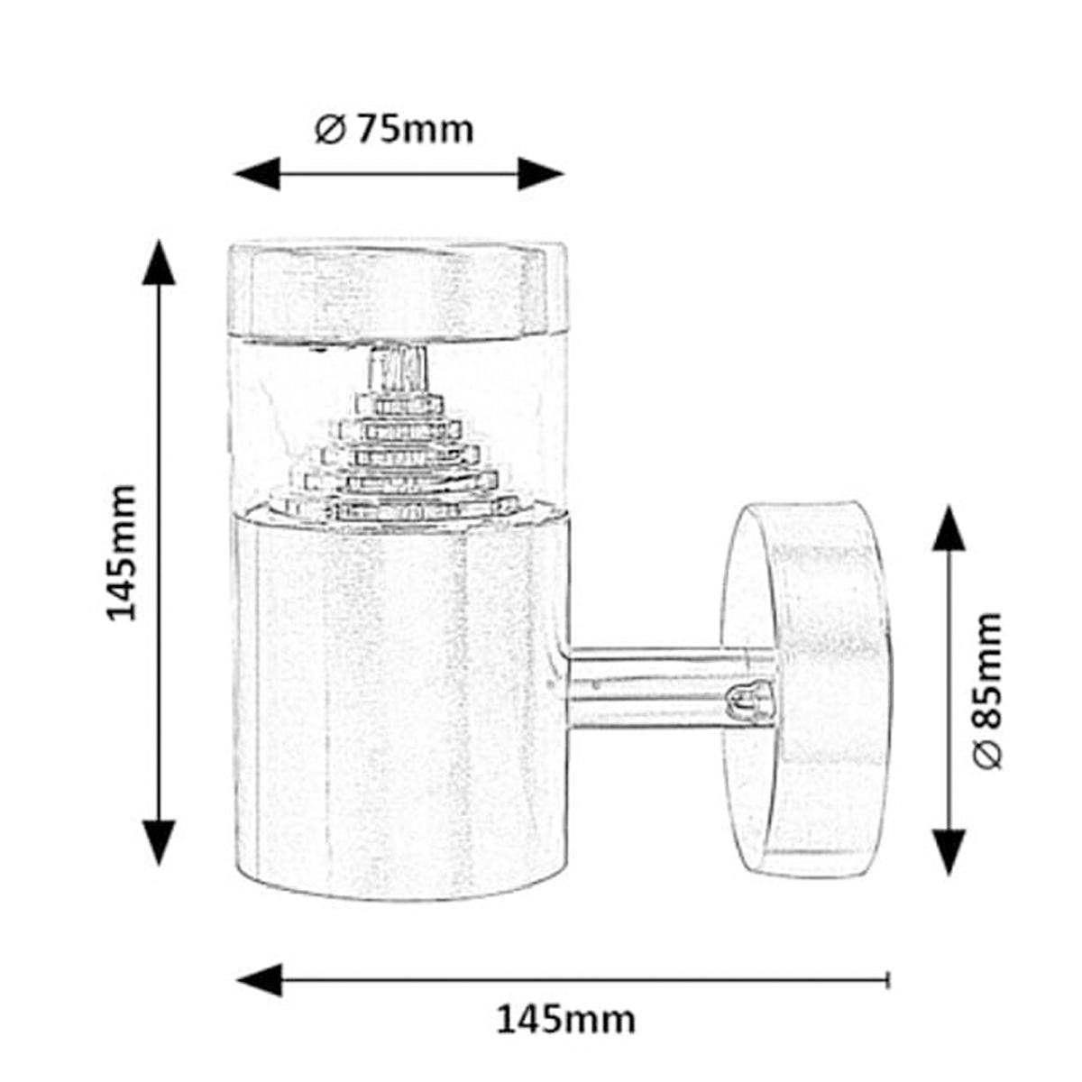 The modern Lisbon outdoor wall lamp is made of stainless steel and finished with a transparent plastic shade. This lamp, with a round decorative base, can be placed on the porch or anywhere on the exterior wall of the house where lighting is needed for safe movement. The Lisbon lamp contains an integrated LED light source with a power of 7W, a luminous flux of 560 lumens and a lifetime of 25,000 hours. The bulb has a color temperature of 4000K which gives natural white light. The dimensions of the cylindrical outdoor light are as follows: both its height and the distance from the wall are 145mm, the base diameter is 85mm. It has an IP54 degree of protection, which ensures protection against dust and water jets from all directions.