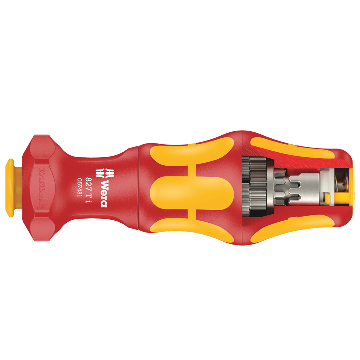 Many users wish to carry out screwdriving operations faster without compromises. With a screwdriver which is precise, allows powerful end screwdriving and is also much faster than a conventional screwdriver. The solution: A planetary drive that can be switched on and off: Integrated in the handle it quadruples the working speed in smooth couplings all mechanically. One hand holds the front part of the handle, the second hand turns the back part of the handle. The turbo function can be switched on and off at the push of a button. Turning it off is recommended for tightening and loosening with high torque as well as for fine adjustments. Robust, maintenance-free steel drive with maximum torque of 14 Nm when the turbo function is deactivated. In the VDE version, the 827 T i Kraftform Turbo bitholding screwdriver with the Wera VDE blades individually tested as per IEC 60900 ensures fast and safe working even under tension up to 1,000 volt. VDE blades with Take it easy Tool finder: Colour coding by profile and laser-engraved size indication – for quick and easy identification of the required tool. In a robust belt pouch. The textile box features a fleece zone at the back. Using the provided self-adhesive hook and loop fastener strips, the textile box can be attached to the Wera 2go components. Or to the wall, shelf or workshop trolley.