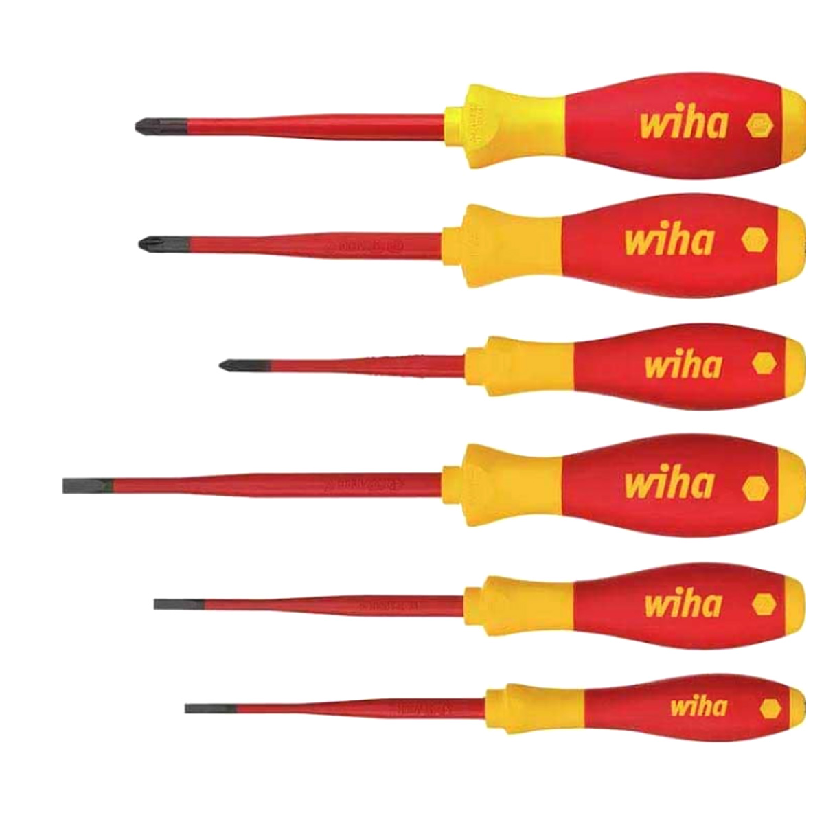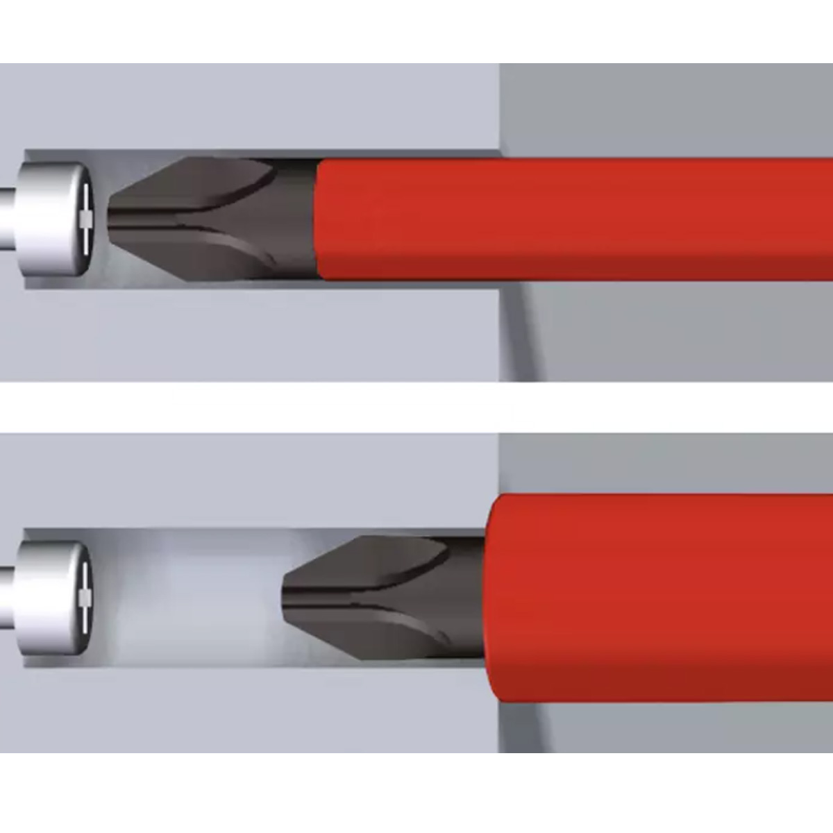 Fastening screws by hand causes considerable strain on wrists and muscles in the long term. The highly ergonomically shaped SoftFinish® screwdriver provides a remedy, ensuring optimal transmission of hand force. The long, slender handle sizes can be used to fasten small screws quickly and firmly. Wiha slimTECHNOLOGY specially developed for electric applications, thus ensuring blades which are up to 33 slimmer. This means low-lying screw and spring elements can also be easily reached. These insulated screwdrivers undergo routine individual piece testing as per the international IEC 60900 standard, as a result * providing users with a tool to work safely on live parts up to 1,000 V AC.Screwdriver Pozidriv/ PZ2 SoftFinish VDE slimFixProduct dimensions: 158 x 36 x 47 mm LxWxD