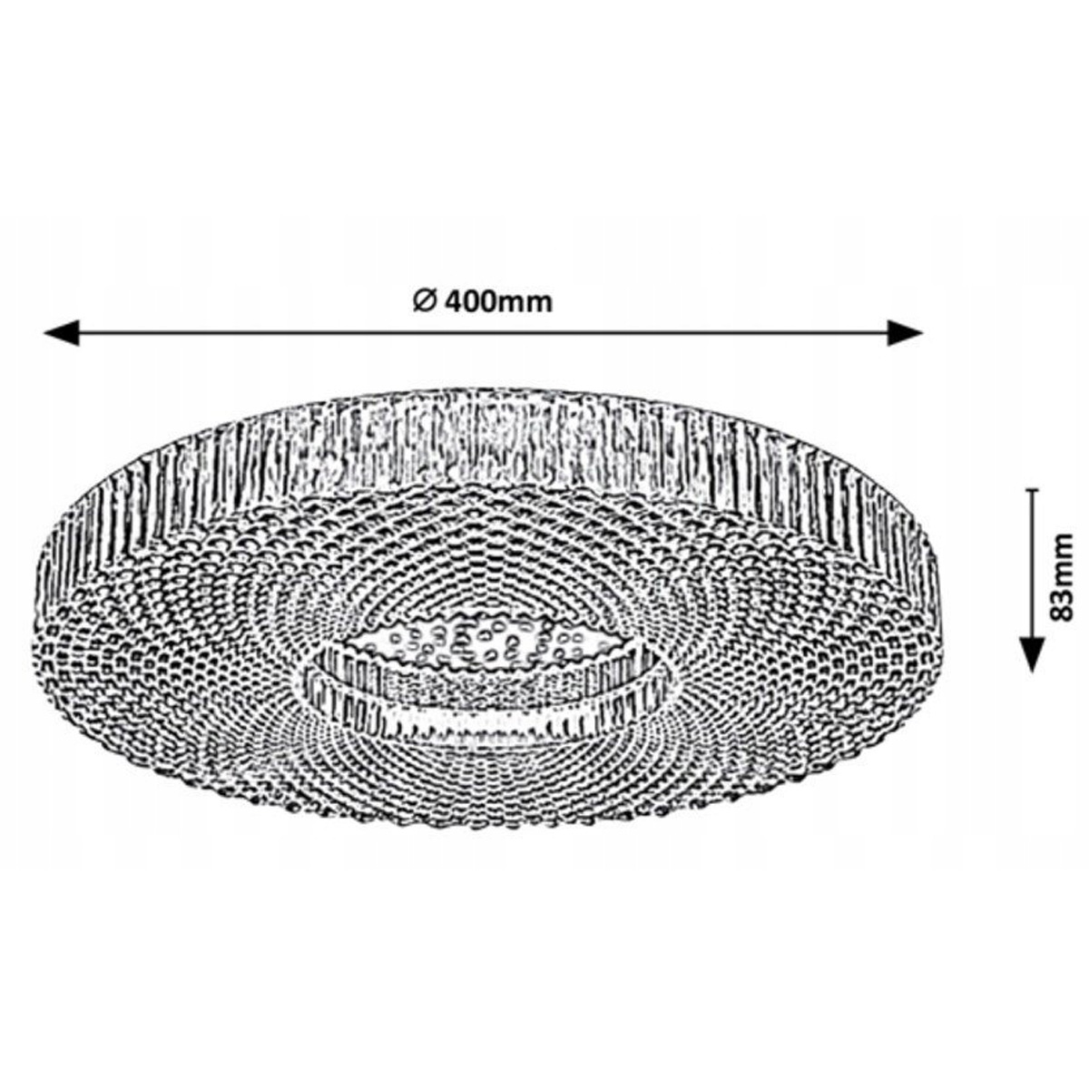 Made of chrome-plated metal and clear plastic, the round model features a built-in energy-saving LED light source. The light source has a power of 36 W, a brightness of 2340 lumens and a lifespan of 25,000 hours. The color temperature of the ceiling light can be adjusted between 3000-6000 K using a wall switch or remote control, ie it can be lit with hot, natural or cold white light.Night light operation.Memory function.Timer function.The ceiling light has a diameter of 400 mm and a distance of 83 mm from the ceiling.